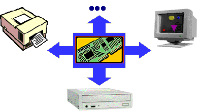 Обмен информацией между оперативной памятью и внешними устройствами называется вводом-выводом информации. В этом процессе обязательно участвуют такие электронные схемы как контроллеры (адаптеры). Для каждого внешнего устройства есть своя электронная схема, которая им управляет – КОНТРОЛЛЕР, или АДАПТЕР. Например, контроллер клавиатуры, адаптера монитора (видеокарта/графический адаптер/видеоплата, и т.д. - названия одного и того же), звуковая карта, котроллер дисков и т.д. Некоторые из них устанавливаются прямо на материнскую плату (контроллер клавиатуры), а некоторые организованы в виде отдельных схем (плат). ![]() Физически видеоадаптер выполнен в виде отдельной дочерней платы, которая вставляется в один из слотов материнской платы и называется видеокартой. Видеоадаптер взял на себя функции видеоконтроллера, видеопроцессора и видеопамяти. Звуковая карта явилась одним из наиболее поздних усовершенствований персонального компьютера. Она подключается к одному из слотов материнской платы в виде дочерней карты и выполняет вычислительные операции, связанные с обработкой звука, речи, музыки. Звук воспроизводится через внешние звуковые колонки, подключаемые к выходу звуковой карты. Специальный разъем позволяет отправить звуковой сигнал на внешний усилитель. Имеется также разъем для подключения микрофона, что позволяет записывать речь или музыку и сохранять их на жестком диске для последующей обработки и использования. Основным параметром звуковой карты является разрядность, определяющая количество битов, используемых при преобразовании сигналов из аналоговой формы в цифровую и наоборот. Чем выше разрядность, тем меньше погрешность, связанная с оцифровкой, тем выше качество звучания. Минимальным требованием сегодняшнего дня являются 16 разрядов, а наибольшее распространение имеют 32-разрядные и 64-разрядные устройства. |